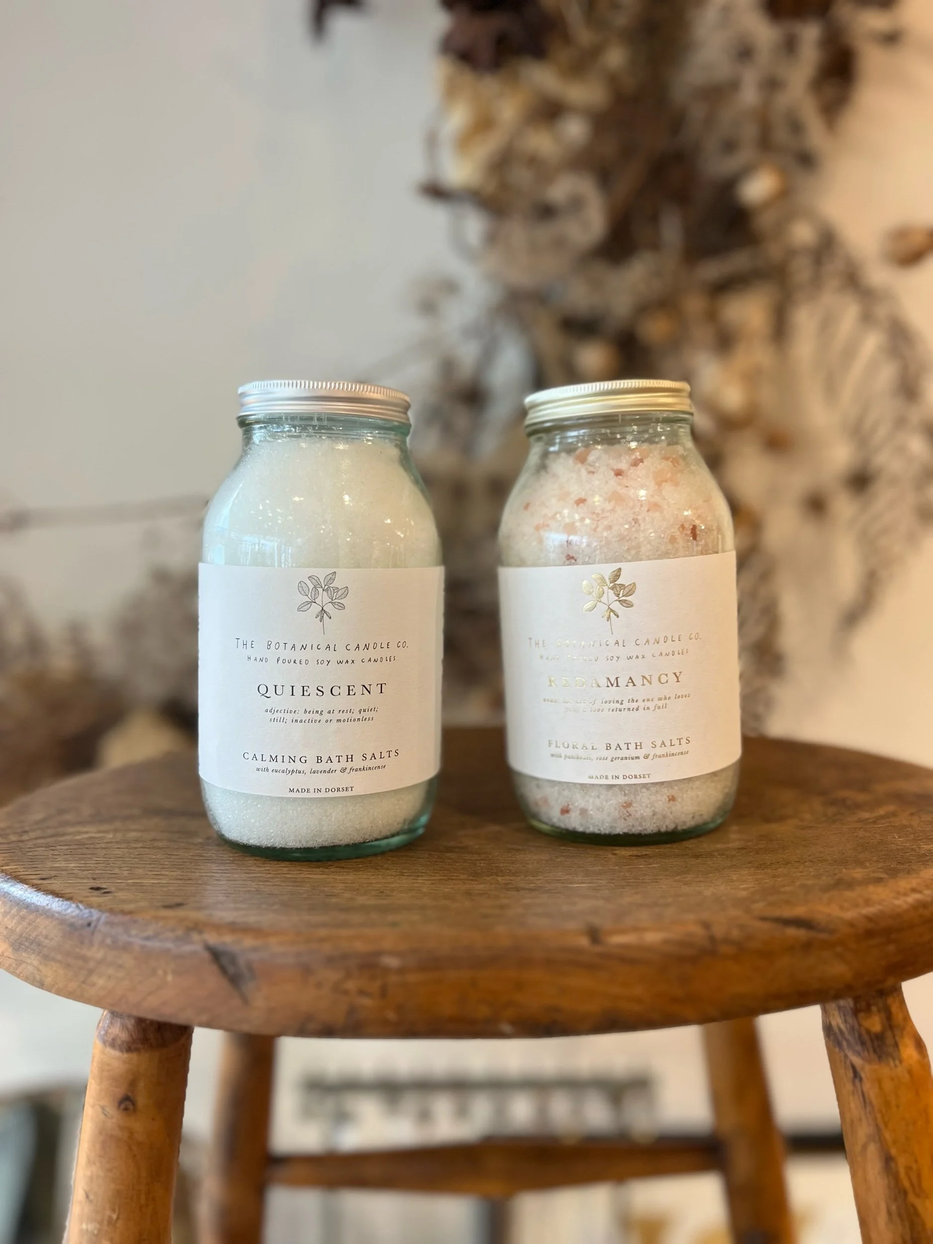 These stunning jarred Bath Salts and made in small batches, blended and filled by hand in the Botanical Candle Company Dorset studio.