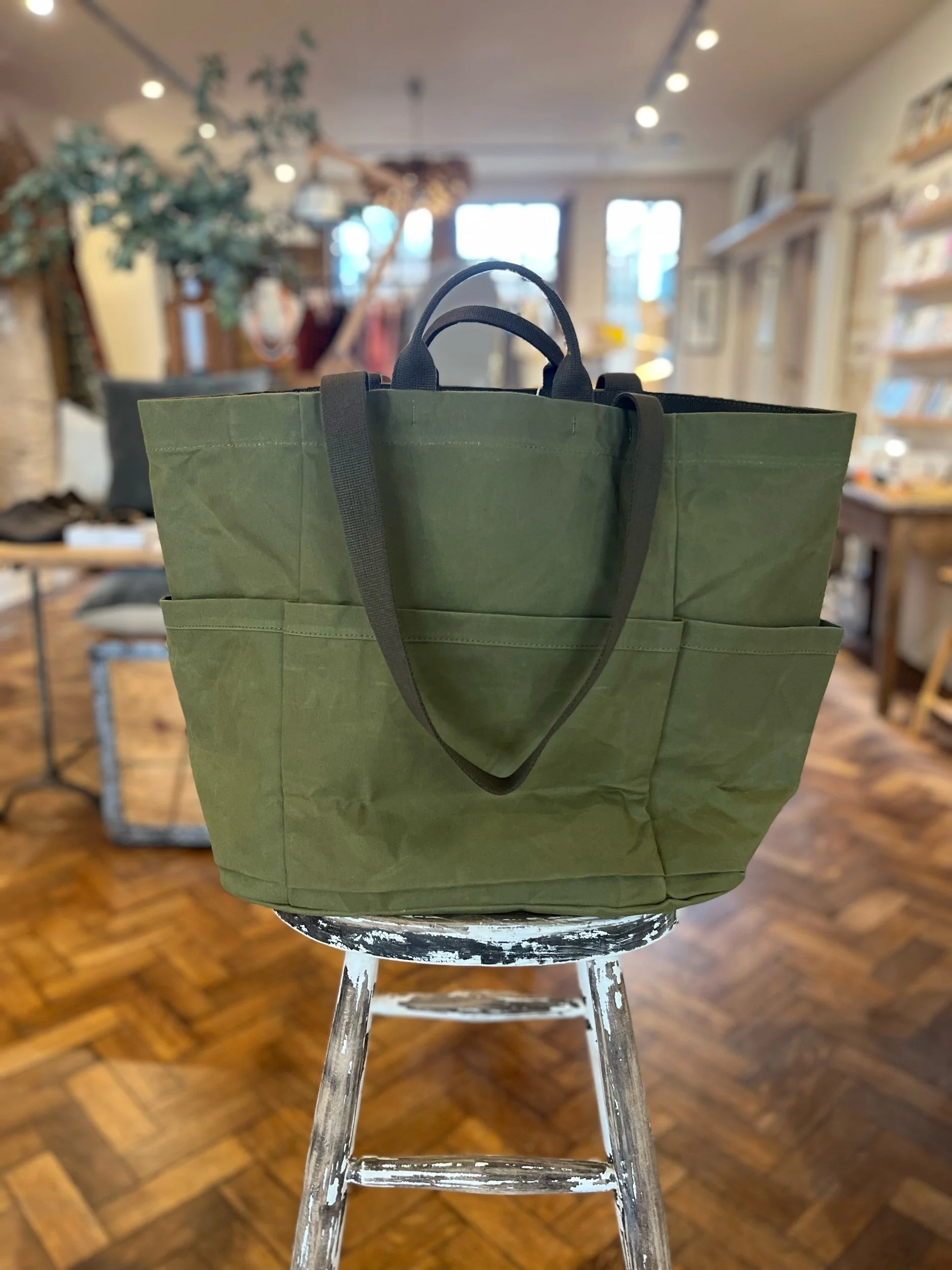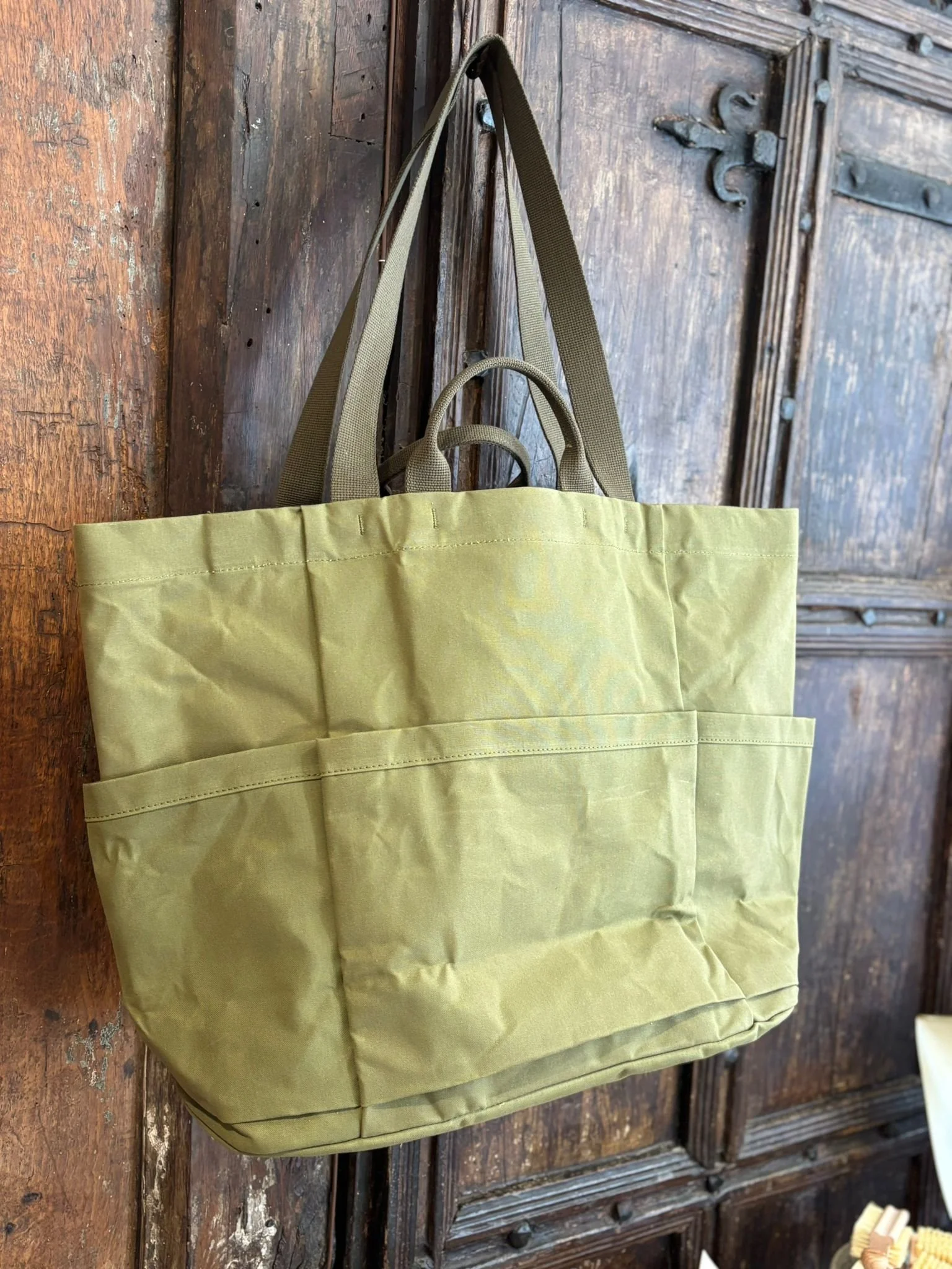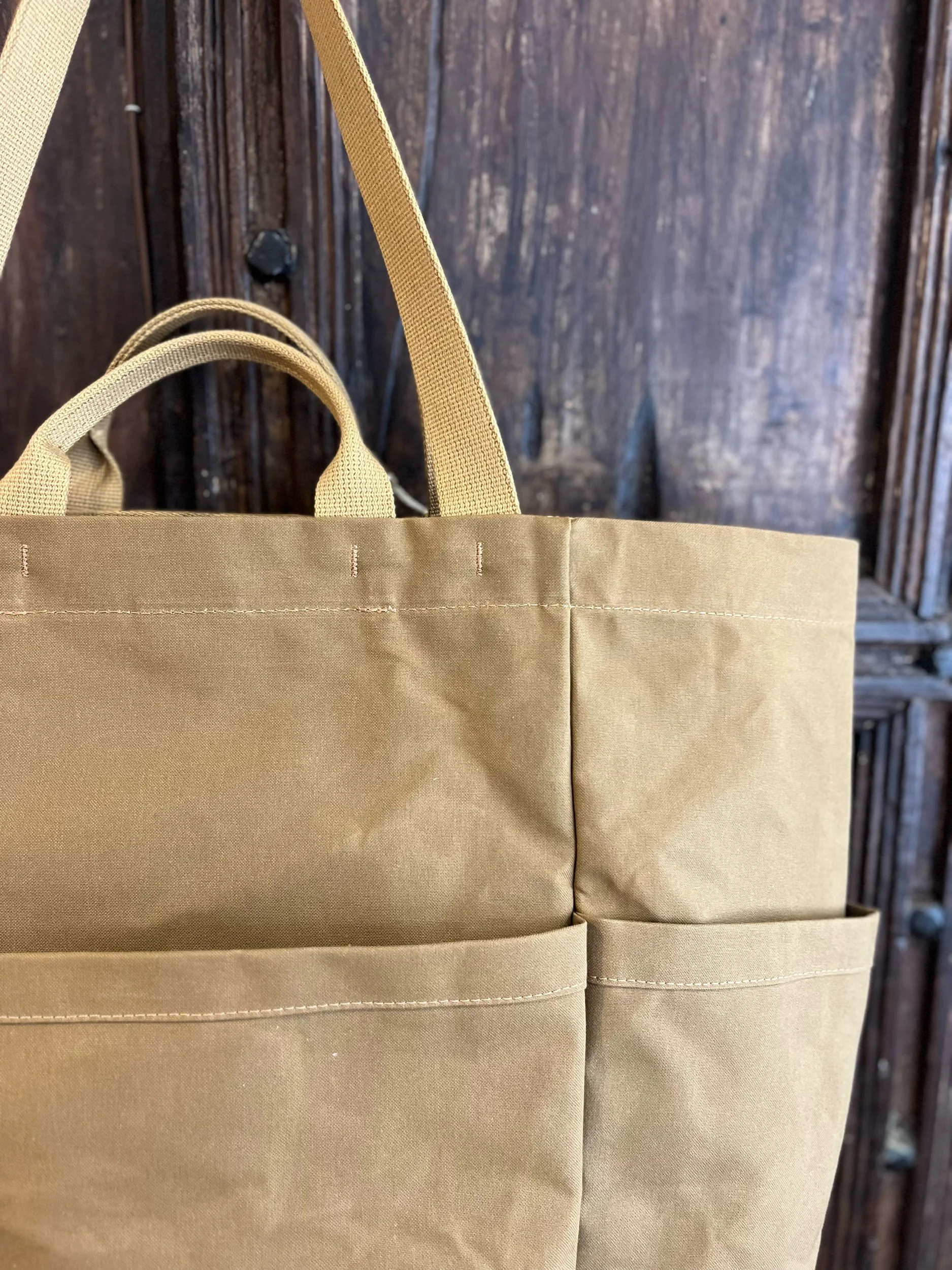 A very generous tote bag with drop pockets, carry handles and a shoulder strap.